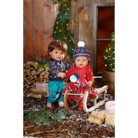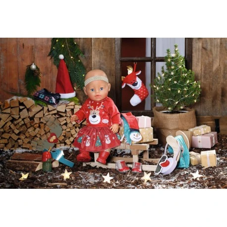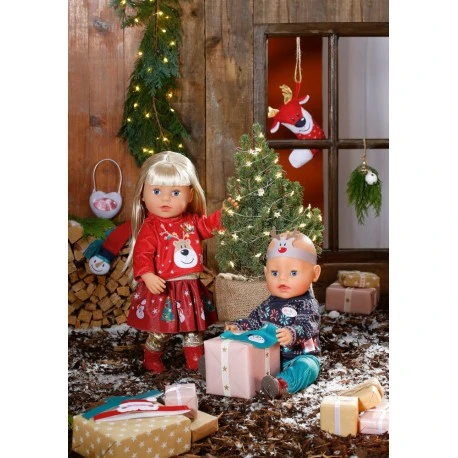 BABY born ist schon in Weihnachtsstimmung, seit sie die ersten Zimtsterne im Supermarkt entdeckt hat. Sie hat ihr Zimmer schon mit weihnachtlichen Stickern dekoriert und den großen Socken aufgehängt. Damit der Nikolaus auch wirklich Platz für all die Süßigkeiten hat, hat sie gleich noch die Stiefelchen und die Winterschuhe daneben gestellt. Eigentlich soll der Weihnachtsmann den Schnuller mitnehmen. BABY born ist ja schon eine Große. Sie würde den Nuckel lieber behalten und hat ihn mit der Schnullerkette gesichert. Ob Heiligenschein und Flügel helfen, den Nikolaus vom Gegenteil zu überzeugen? Natürlich trägt BABY born auch ihre Outfits mit Weihnachtsmotiven. Sie hat zwei kuschelige Pullis, eine Hose, goldene Leggings, einen Rock und eine herzige Tasche. Für draußen gibt’s noch ein Halstuch, einen Schal, eine Mütze und eine stylische Sonnenbrille. Neben weiteren verspielten Accessoires darf eine Nikolausmütze im Adventskalender natürlich nicht fehlen. Hochwertiges Zubehör für die BABY born Markenspielpuppe. Für erweitertes, abwechslungsreiches und langanhaltendes Spielvergnügen. BABY born Adventskalender aus 24 Überraschungen, bestehend aus Kleidungsstücken und Accessoires für BABY born..