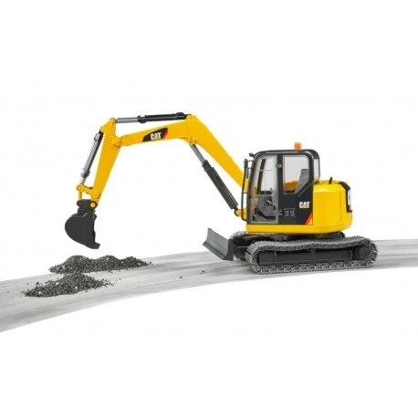 Der Cat Minibagger ist nicht wirklich mini, sondern eine echte Größe in seiner Klasse. Durch seine kompakten Aufbauabmessungen ist er auch auf engem Terrain Zuhause. Der zusätzlich seitlich schwenkbare Baggerarm macht ihn beim Landschafts- und Gartenbau sowie bei allgemeinen Bautätigkeiten unverzichtbar, um kleinere Erdbewegungen rationell zu leisten. Durch das Raupenfahrwerk sind schwierige Bodenverhältnisse kein Hindernis. Das Fahrwerksschild verleiht beim Einsatz auf losem Grund mehr Stabilität und ist für einfache Planierarbeiten zu gebrauchen. Die Ausstattung des Modells ist neben seinen realistischen Spielfunktionen reichhaltig. Die Baggerschaufel kann abgenommen werden. Der Motorraum kann am Heck geöffnet werden, die Kabine ist verglast mit zu öffnender Tür. Der Baggeraufbau ist um 360° drehbar und der Schaufelarm zusätzlich um 180° schwenkbar –just like the real thing-..