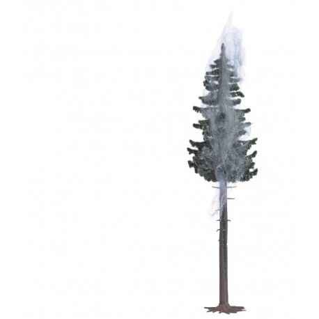 Hochstammfichte, in die gerade der Blitz eingeschlagen hat. Der brennende Baumstamm ist durch integrierte LEDs mit einem realistisch glimmenden Brandeffekt dargestellt. Rauchwolle in der Baumkrone simuliert den aufsteigenden Rauch. Zum Anschluss an 14 – 16 V Gleich- oder Wechselspannung. Höhe: 160 mm..