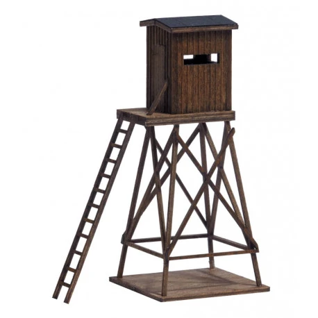 Typischer Hochsitz als Ausguck für Jäger und Naturschützer. Echtholzteile bereits fertig farbig gebeizt. Universell einsetzbar in Feld, Wald und Wiese. Bausatz. Größe: ca. 31 x 31 mm, 70 mm hoch
