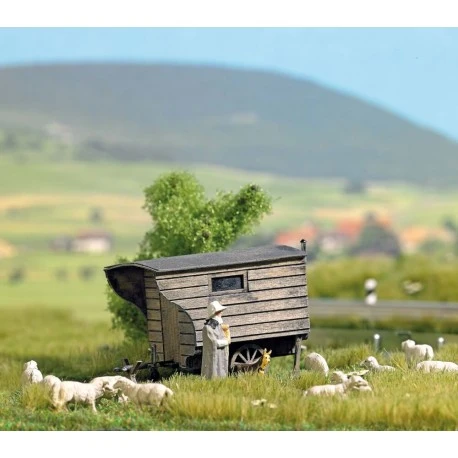 Anhänger als Schäferwagen. Bausatz aus echtem Holz. Größe: 44 x 25 mm, Höhe: 30 mm..