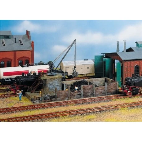 Mit manuell schwenkbarem Verladekran und Kohlewagen (»Hunten«). Einsetzbar in kleinen Bahnbetriebswerken..
