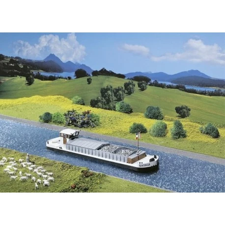 Für die Binnen-Schifffahrt auf den Modellanlagen. Abgedeckte Ladeluken und Steuerhaus. Abgeflachter Rumpf. Nicht schwimmfähig..