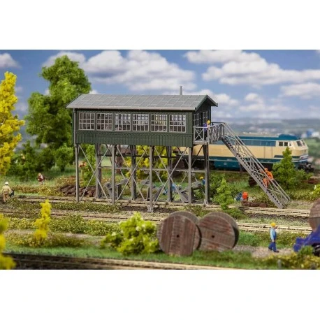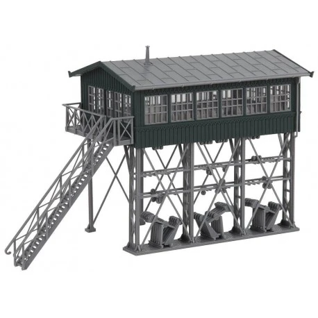 Tolle Aussicht! Mechanisches Reiterstellwerk nach einem 1886 in Konstanz errichteten Vorbild, das die Wutachtalbahn in Süddeutschland heute als Museumsstellwerk nutzt. Die Stelzenkonstruktion wird über einem Gleis stehend eingesetzt. Der großzügig verglaste Bedienraum kann mit der passenden »Stellwerkinneneinrichtung«, Art. 120118 ausgestattet werden..