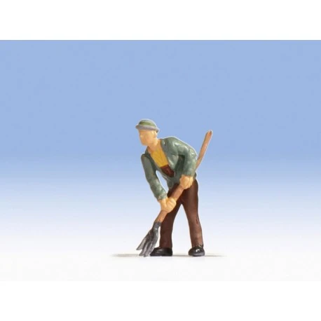 Landwirte bei der Heuernte.Das Set für die Spur H0 (Maßstab 1:87, ca. 2 cm hoch) enthält sechs Landwirte bei der Heuernte sowie fünf Heinzen und weitere Arbeitsgeräte.Ein Mann in einem hellen Shirt und einer blauen Hose beugt sich nach vorne, um das Gras mit einer Sichel zu mähen. Die junge Frau im gelben Kleid hält einen Rechen in der Hand. Eine weitere Bäuerin trägt ein grünes Kleid und schaufelt das Heu mit einer Gabel auf die Heinzen. Der Mann mit der blauen Jacke und dem hellblauen Hemd schleift seine Sense, damit diese wieder scharf ist. Ein weiterer Landwirt in einem hellgelben Hemd und einer grauen Hose recht das Heu zusammen. Der letzte Arbeiter trägt eine grüne Jacke, ein gelbes Hemd sowie eine braue Latzhose und lädt das Heu mit einer Gabel auf.Die Miniaturfiguren sind ideal zur Dekoration von ländlichen Szenen geeignet..
