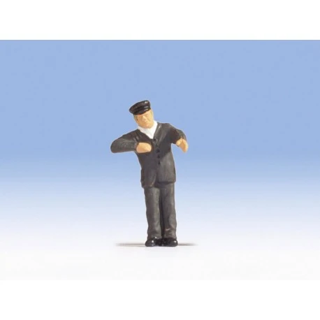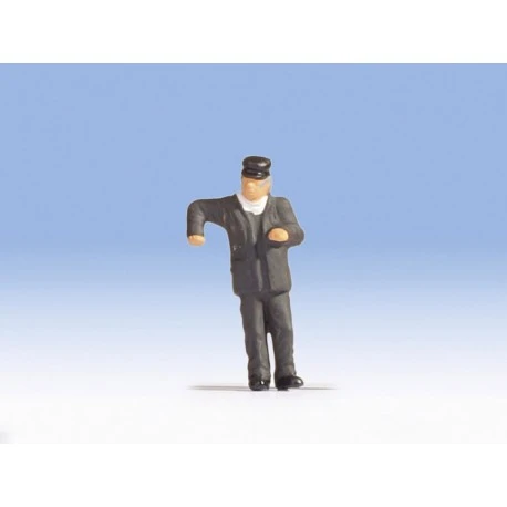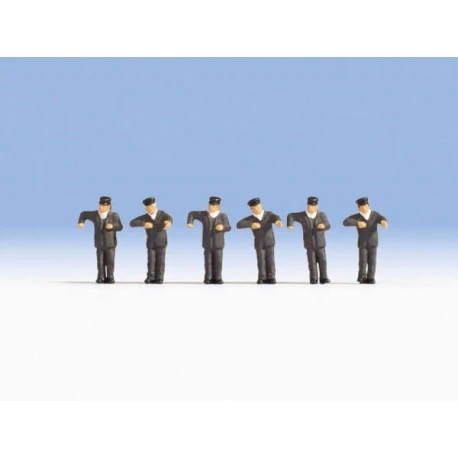 Lokführer für Dampflokomotiven.Die Lokführer tragen die für die damalige Zeit typische schwarze Uniform und schwarze Kappen. Da die Arbeit auf den sogenannten Dampfrössern sehr staubig und rußig war, bot sich unempfindliche schwarze Arbeitskleidung an. Die Lokführer stehen in typischer Haltung und sind jeweils paarweise einsetzbar. Ein Lokführer steht rechts im Führerstand, legt den Arm auf und schaut aus dem Fenster. Der linke Lokführer bedient die Steuerung. Unbemannte Loks sind auf Modellbahnanlagen unattraktiv und unrealistisch. Mit den Lokführern lassen sich Dampflokomotiven realitätsnah dekorieren.Das Set enthält sechs handmalte Kunststofffiguren für die Spur H0 (Maßstab 1:87, ca. 2 cm hoch)..
