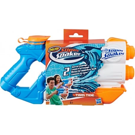 Doppelt spritzt besser! Dem Blaster mit dem Zwillingslauf kann keiner entkommen. Der Twin Tide Blaster von Super Soaker bietet Wasser-Action hoch zwei! Dieser spritzige H2O-Blaster aus dem Hause NERF verfügt über zwei Läufe und zwei Düsen, sodass bei jedem Schuss zwei Wasserstrahlen gleichzeitig aus dem Blaster befördert werden. Ausgestattet mit einem 975 ml Tank und einem Pumpgriff, der durch Vor- und Zurückziehen das Wasser durch die Düsen schickt, garantiert dieser Blaster die doppelte Splash-Attacke. Mitspieler aufgepasst, den mit dem Twin Tide Blaster gibt es gleich die zweifache Abkühlung – dieser Super Soaker macht jeden doppelt nass! Ab 6 Jahren..