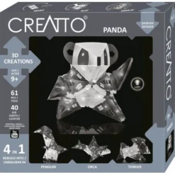 Strahlender 3D-Panda zum Zusammenstecken. Unglaublich, wie aus vielen Einzelteilen geniale 3D-Tierfiguren entstehen! Mit dem 3D-Puzzle-Set „Panda von CREATTO springen und schwimmen sie schon bald durchs Kinderzimmer. Kinder ab 9 Jahren folgen der Anleitung in der Bastelbox oder als Videotutorial und testen die Möglichkeiten des dreidimensionalen Bauens mit den flexiblen Elementen aus Kunststoff. Neben dem Panda warten noch ein Pinguin, ein Schwertwal oder ein Terrier darauf, von kleinen Baumeistern zum Leben erweckt zu werden. Jetzt noch die LED-Lichterkette befestigen und das Dekostück im skandinavischen Design präsentieren..