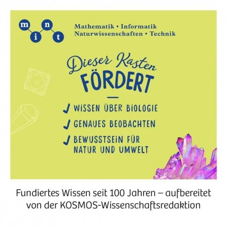 Eine Labor-Station in der es funkelt! Mit tollen Laborutensilien können Kinder von 10 bis 13 Jahren hier die unterschiedlichsten Kristalle wachsen lassen. Von Kristallnadeln, geometrische Kristallformen und kleinem Kristallvulkan ist alles geboten und mit dem mechanischen Teströhrchen-Mixer seitlich an der Station können die Farben besonders gut vermischt werden. Einige Kristalle wachen in wenigen Minuten, andere brauchen ein paar Tage um zu funkelnden Einzelstücken heranzuwachsen. Aber was unterscheidet Kristalle eigentlich von Mineralien? Die ausführliche, farbige Anleitung erklärt alle Versuche Schritt für Schritt und hält viele Zusatzinformationen rund um Kristalle und ihre Vielfältigkeit bereit. Das Kristall-Labor ist für Kinder von 10 bis 13 Jahren ein toller Einstieg in die bunte Welt der Wissenschaft!.