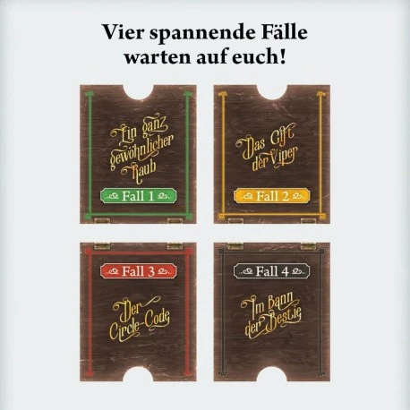 Seltsames geht hier vor! Ein Team nimmt im verträumten Küstenort Redcliff Bay die Ermittlungen in vier Fällen auf. Das ist gar nicht so einfach: Bei der Suche nach Spuren treffen die 1-4 Spieler*innen nämlich auf sehr eigenwillige Einwohner mit speziellen Eigenheiten. Verdächtig, oder? Runde für Runde entscheidet das Team, an welchem Ort es zur aktuellen Uhrzeit in diesem Krimi weiterermittelt. Gemeinsam wägen die Spieler*innen ab, wo es gerade wohl die nützlichsten Informationen gibt oder die interessantesten Dinge vor sich gehen. Eine spannende Geschichte, einfache Regeln und schräge Charaktere – das ideale Detektiv-Spiel für Familien und Gelegenheitsspieler*innen..