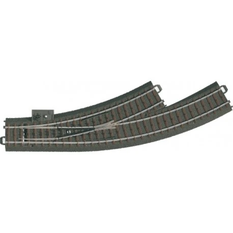 Innenbogen: R1 = 360 mm / 30°. Außenbogen: 30° im Parallelkreisabstand 77,5 mm. Mit Handschalthebel. Elektroantrieb 74491, Digital-Decoder 74461 und Weichenlaternen 74470 nachrüstbar..