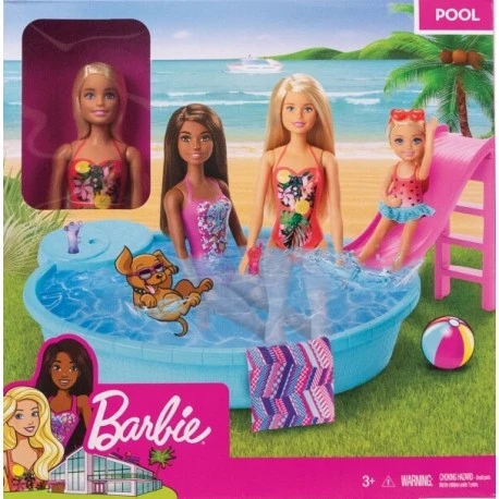 Rutsch in den Sommerspaß mit Barbie und ihrem Pool! Der Pool lässt sich einfach befüllen und leeren. Er bietet genügend Platz für Barbie und ihre Schwestern oder Freundinnen (separat erhältlich). Einer spontanen Pool-Party steht also nichts im Weg! Barbie rutscht oder springt in den Pool oder relaxt im integrierten Sitzbereich. Das Design ist stylisch und farbenfroh, und die Accessoires regen die Fantasie zu tollen Geschichten an. Zwei kühle Getränke, zwei Getränkehalter am Sitzbereich und ein Handtuch mit buntem Aufdruck stehen für den perfekten Sommertag zur Verfügung. Barbie freut sich schon aufs Schwimmen und trägt einen bunten Badeanzug mit lustigem Blumenmotiv. Einen ganzen Sommer lang und darüber hinaus dauert der Spielspaß mit Barbie und ihrem Pool an. Alle Barbie-Puppen und Accessoires zusammen (alle Artikel separat erhältlich) sorgen für zusätzliche Spielmöglichkeiten. Die Puppe kann nicht von allein schwimmen oder stehen. Abweichungen in Farbe und Gestaltung vorbehalten..