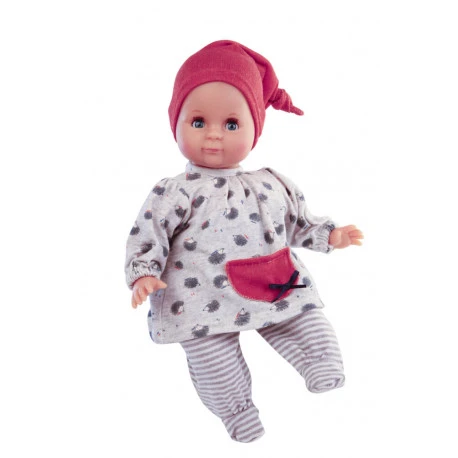 Mein erstes Schlummerle, die beliebteste und bekannteste Puppe, ohne Haare für die Kleinsten. Ein unverwechselbares Gesicht vereint Qualität und Spielwert und begeistert schon seit Generationen unsere Puppenmuttis.Die Puppe wird in unserer eigenen Puppenmanufaktur in Rauenstein/Thüringen hergestellt. Arme, Beine und Kopf sind aus Vinyl, sie hat lustige blaue Schlafaugen und gemalte Haare. Es trägt eine Ringelhose, eine graue Tunika mit Igeln bedruckt und eine rote Zipfelmütze. Die Kleidung ist leicht an- und ausziehbar und bei 30 Grad per Hand waschbar. GRATIS STICKEREI: Als besonderen Service bieten wir an, eine individuelle Widmung (z.B. Name und Geburtsdatum der Puppenmutti) ohne Aufpreis auf den Puppenbauch zu sticken. Wenn Sie eine ganz persönliche Puppe für Ihr Kind möchten, dann geben Sie Ihre Wunschbestickung oben in die dafür vorgesehenen Felder ein..