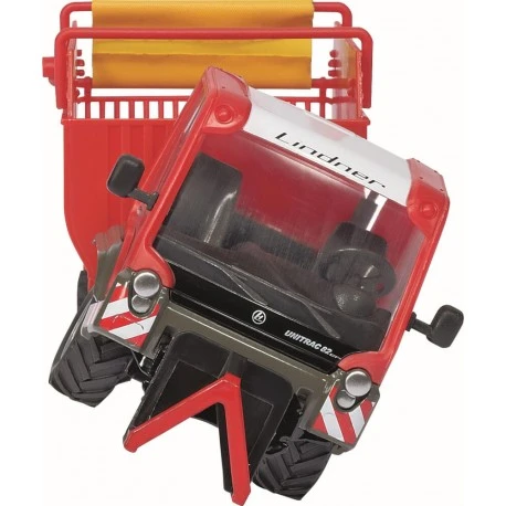 Die Arbeit an Berghängen, hoch gelegenen Weiden und in schmalen Tälern ist die Hauptaufgabe dieses Multifunktionsfahrzeugs, das im landwirtschaftlichen Maßstab 32-fach verkleinert das SIKU-Farmer Sortiment ergänzt. Der Unitrac ist mit einem Gelenk mit Niveauausgleich versehen, welches in unebenem Gelände das Fahrzeug in der Spur hält. Die mit klappbaren Spiegeln ausgestattete Kabine kann seitlich geklappt werden und gibt den Blick auf den detailreich gestalteten Motor frei. Das Kabinendach ist abnehmbar, so dass SIKU-Fahrerfiguren in das Modell gesetzt werden können. Am Ladewagen, der mit einem durch Gravuren angedeuteten Kratzboden aufwartet, wird detailreich die Ladefunktion dargestellt. Der bewegliche Greifarm am Heck des Fahrzeugs ist in Arbeits- und Fahrposition schwenkbar. Mit der Anhängevorrichtung an der Front des Modells lassen sich die verfügbaren SIKU-Frontgeräte auch mit diesem Fahrzeug nutzen. Ab 3 Jahren.