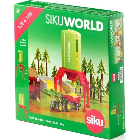 Das imposante Standsilo mit einem Fassungsvermögen von 1,2 Litern ist der Mittelpunkt jeder SIKU-Farm im Kinderzimmer. Zum Beladen können Traktoren mit Anhänger oder Lastwagen mit Auflieger unter das SILO fahren. Durch in der Höhe verstellbare Stützen ist die Durchfahrtshöhe für SIKU-Modelle in den Maßstäben 1:87 bis 1:32 flexibel anzupassen. Die Füllstandsanzeiger am Aufbau informieren jederzeit, ob noch genug Material zum Verladen bereit steht. Ein gut dosiertes Beladen der Fahrzeuge wird durch einen stufenlos drehbaren Auslass ermöglicht. Zum Befüllen des Behälters ist der mit einem Schraubverschluss gesicherte Deckel abnehmbar. Empfohlen wird ein grobkörniges Schüttgut. Ab 3 Jahren..
