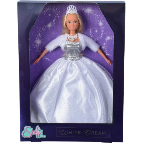 Steffi in einem traumhaften weißen Glitzerkleid mit Glitzerstein, 29cm, WB, 3J+.