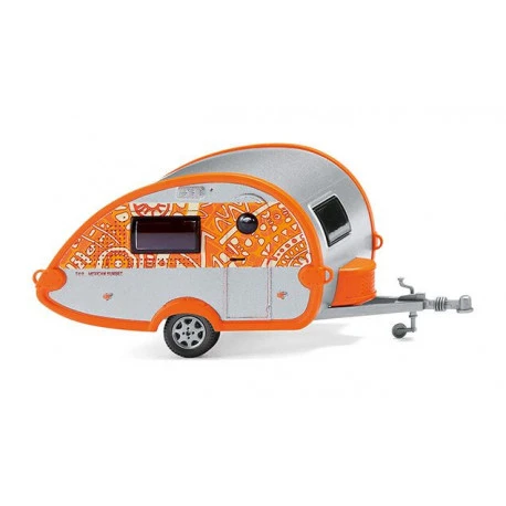 Das Objekt der Begierde bereits auf dem Weg zum Klassiker zu erkennen, WIKING ist es mit der Miniaturisierung des T@B gelungen. In der farbaktualisierten Version überzeugt der Camper mit der organischen Retro-Form auf Anhieb und ist für Freunde des Besonderen so etwas wie eine Sympathiekundgebung des Wohnwagenbaus. Wer das Original erlebt, erkennt die Strahlkraft der kleinen WIKING-Miniatur auf Anhieb wieder. Soviel formalen Mut der Konstrukteure des Wohnwagenherstellers Tabbert darf ruhig mit einer attraktiven Farbvariante mit hellrotorangen Flanken belohnt werden. Während in den fünfziger Jahren genau diese Ei-Form die Wohnwagenleidenschaft der Deutschen prägte, bedeutet das wieder erstarkte Retro-Design heute eine willkommene Abwechslung im Freizeitgeschehen.