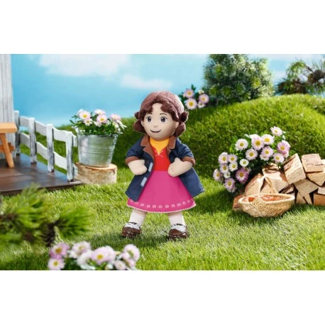 Heidi hat viel zu erzählen. Nicht nur von ihren Abenteuern in den Bergen. Die freundliche Stoffpuppe spricht auf Knopfdruck den Satz nach, den man ihr vorsagt. Dank ihrer stabilen Haferlschuhe steht sie ganz selbständig vor der Geschichtenerzählerin oder dem Märchenonkel und wartet neugierig darauf etwas wieder geben zu dürfen. Die weiche Puppe kuschelt auch gerne und tauscht dann flüsternd Geheimnisse aus. Für Ausflüge in luftige Höhen trägt sie einen blauen Mantel über ihrem Kleid..